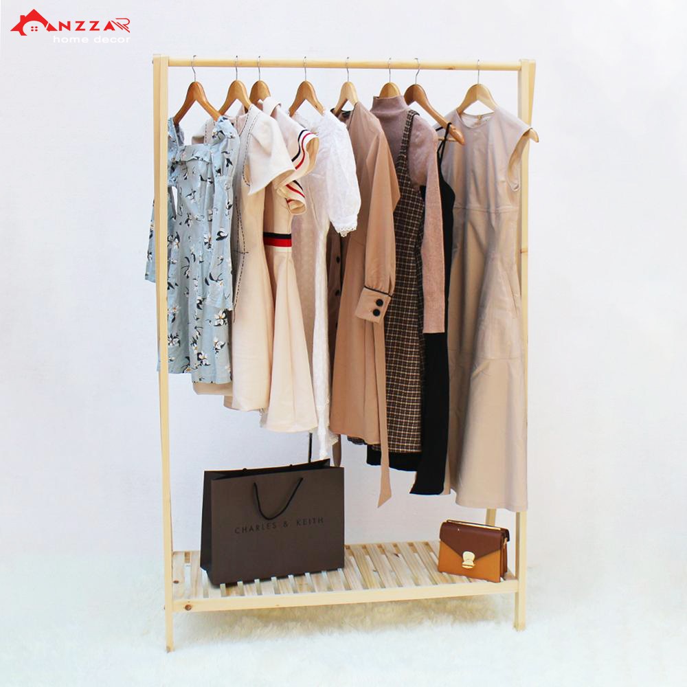 - Giá treo quần áo gỗ dùng để treo và cất giữ quần áo trong phòng ngủ thay thế tủ đồ.