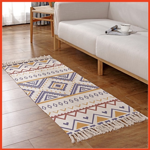 Thảm vintage tua rua, thảm lót chân giường, thảm chùi chân