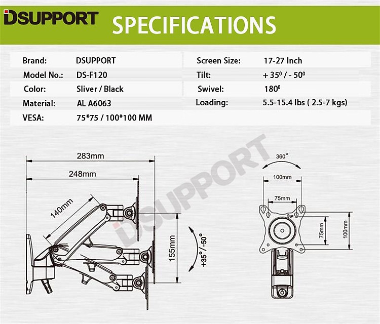 ■ Tương thích với VESA(tâm lỗ vít) 75x75, 100x100mm