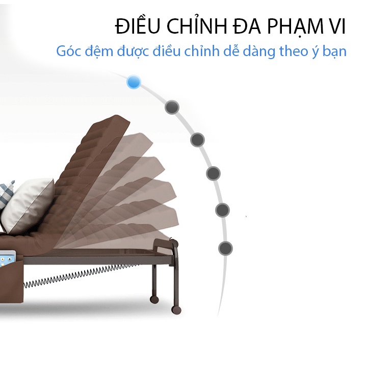 Chân giường có khóa chốt an toàn cố định giường. Vỏ đệm có thể tháo rời, giặt sạch. Đầu giường có thể nâng lên hạ xuống rất tiện dụng trong lúc đọc sách, thư giãn hoặc bệnh nhân trong điều trị được bác sĩ chỉ định nằm cao đầu.