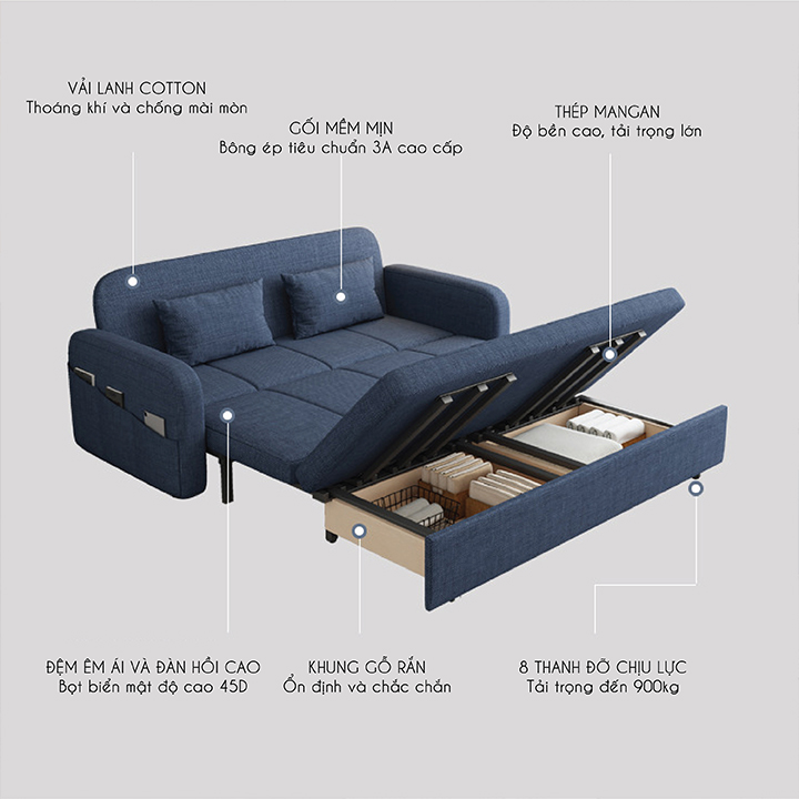 - Vận hành chuyển đổi trạng thái kéo ra thành giường sofa hoặc đẩy vào thành ghế sofa cực kì nhẹ nhàng với bất kì ai.