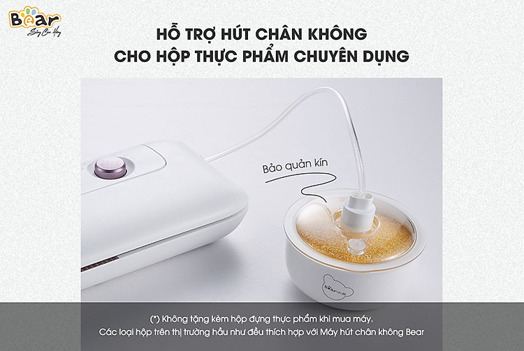 ![[Hàng Chính Hãng]Máy hút chân không thực phẩm Bear VS-B01V1 màu trắng công suất 130W. Lực hút mạnh, áp suất 70KPA, hút được 8L/phút. Từ đó, thực phẩm sẽ được bảo quản lên đến 2 tuần trong ngăn mát - 2 tháng trong ngăn đông đá](https://salt.tikicdn.com/ts/product/04/e6/b1/48d54c3d7494945203d69713c80b44f8.jpg)