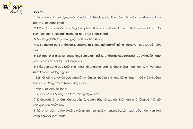 Một số lưu ý khi sử dụng máy hút chân không Bear VS-B01V1?