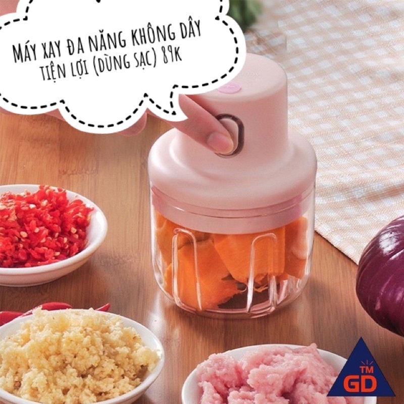 (HÀNG LOẠI 1) Máy Xay Mini Sạc Điện Đa Năng, Có Cổng Sạc Usb, Xay Thịt, Hành, Tỏi, Rau Củ Quả