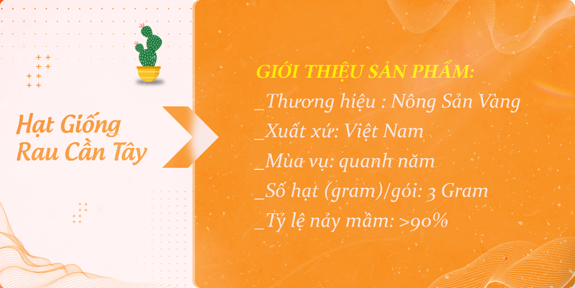 | Chất liệu | Hạt giống Cây Cần Tây Dễ Trồng, Nhiều Dinh Dưỡng, Tốt Cho Sức Khỏe Được Rất Nhiều Gia Đình Ưa Chuộng (Gói 3 Gram) - Nông Sản Vàng |