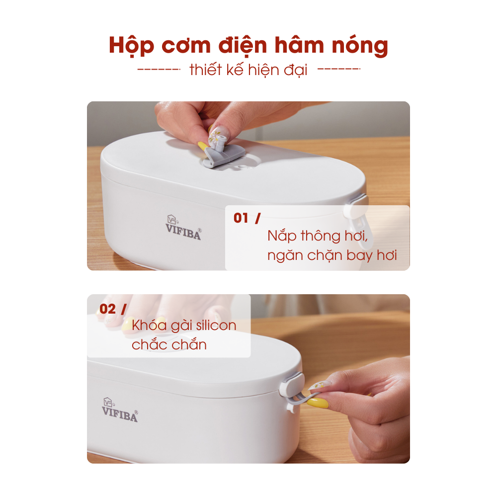 Hộp Cơm Cắm Điện Văn Phòng VIFIBA Hâm Nóng và Giữ Nhiệt, có 3 Ngăn, Tay Cầm Dễ Mang Đi