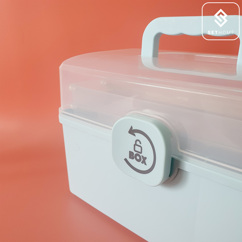 | Hướng dẫn bảo quản | - Sử dụng chất liệu nhựa PP, thân thiện với môi trường, sức khoẻ, dày, bền, đẹp. - Thiết kế 3 tầng giúp: + Góc mở 180 độ dễ dàng lấy thuốc ở các tầng+ Phân loại các loại thuốc theo các tầng, tìm thuốc dễ dàng khi có nhu cầu.+ Tránh hỏng thuốc+ Trẻ em không ăn nhầm thuốc - Khoá hộp thiết kế dạng xoay, dễ dàng đóng mở.- Có tay xách, dễ dàng cầm di chuyển trong các khu vực trong nhà. |
