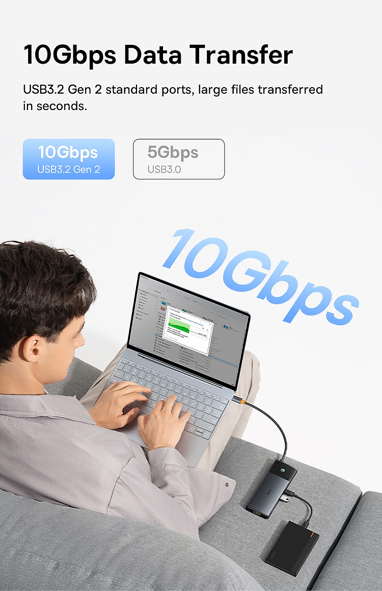 10 Cổng Kết Nối Đa Dạng: OS-Baseus Metal Gleam Series II cung cấp 10 cổng kết nối khác nhau. Với sự đa dạng này, bạn có thể kết nối mọi thiết bị từ máy tính, máy tính xách tay, điện thoại di động, máy tính bảng, đến máy chiếu và hệ thống âm thanh.