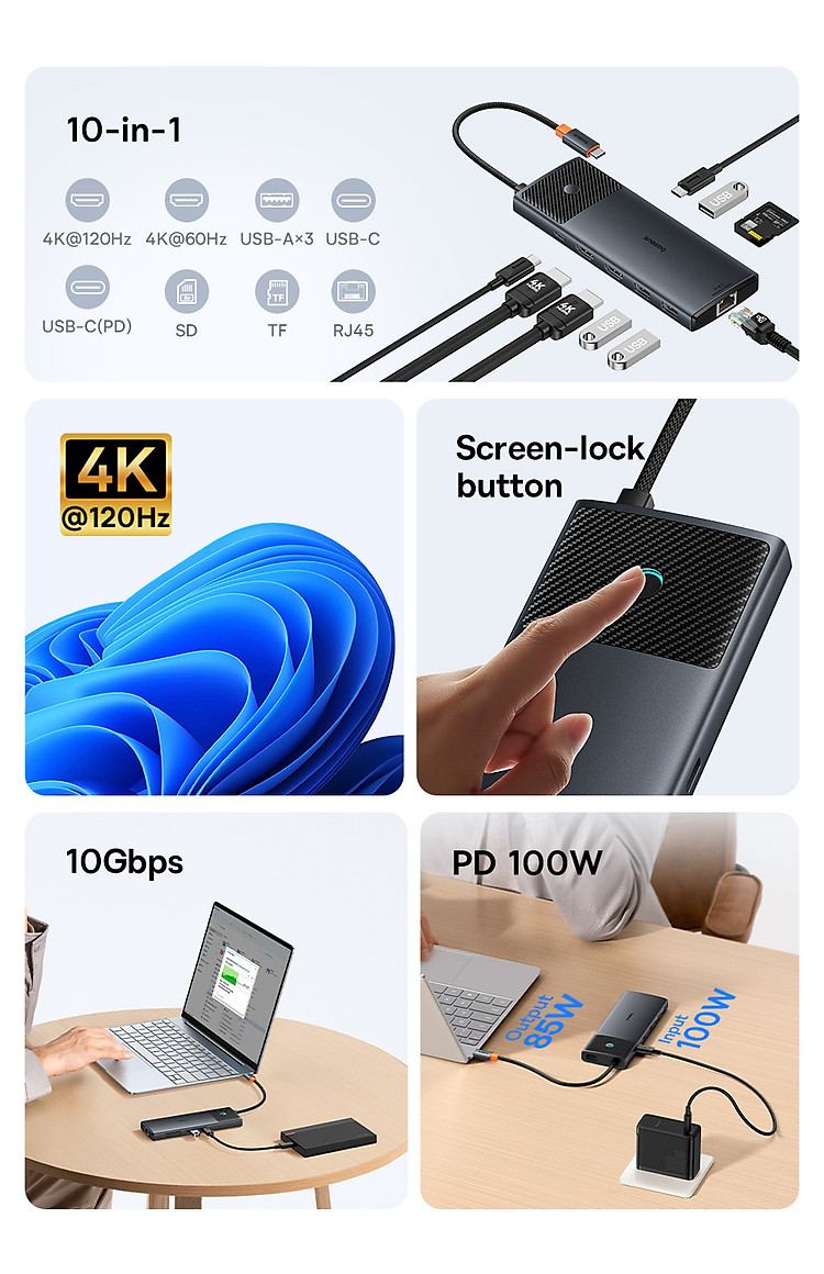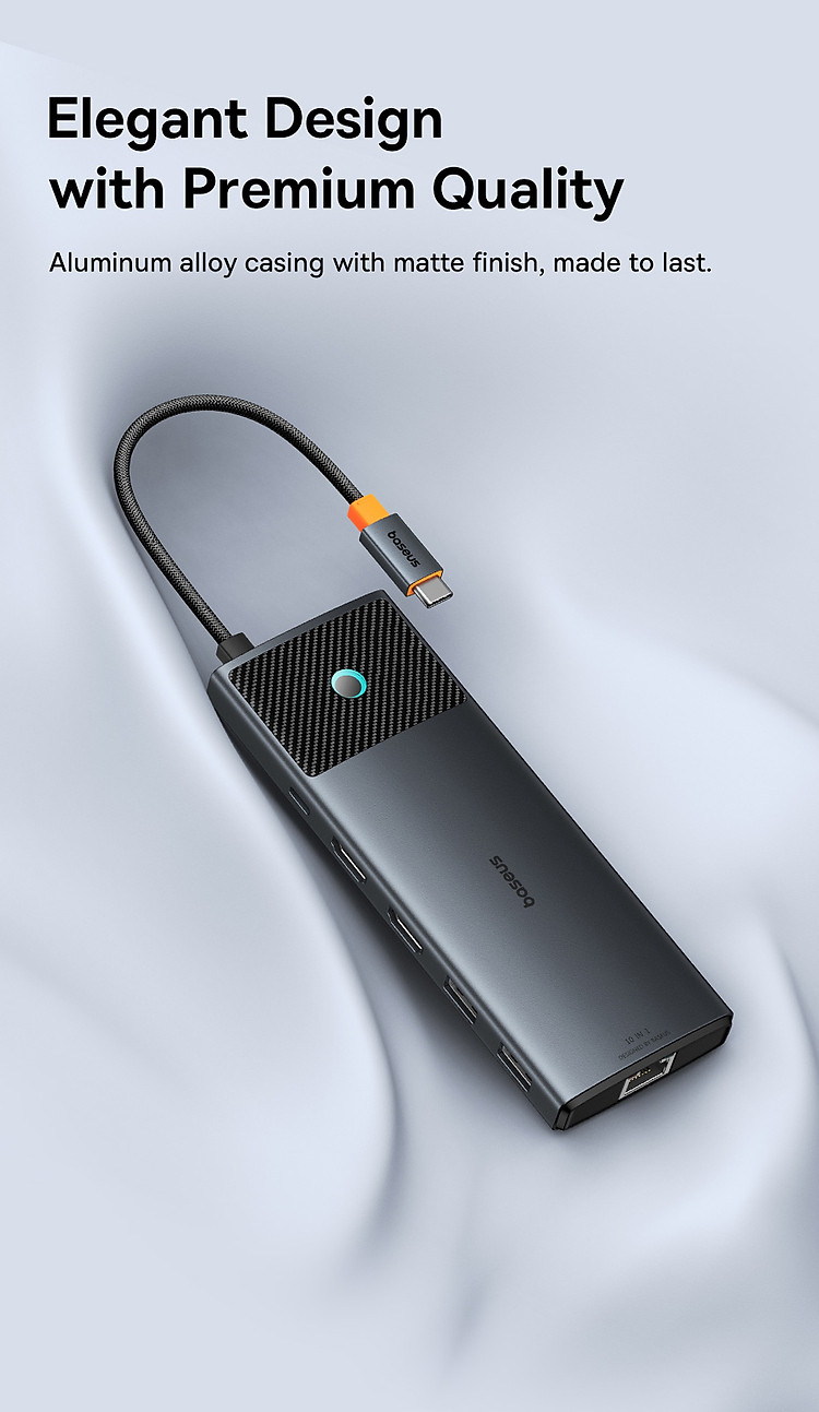 OS-Baseus Metal Gleam Series II 10-in-1 là một giải pháp đa dạng và tiện ích cho nhu cầu kết nối của bạn. Với 10 cổng kết nối đa dạng, sản phẩm này được thiết kế để tạo điểm kết nối trung tâm cho mọi thiết bị của bạn, giúp bạn làm việc, giải trí và tương tác dễ dàng hơn bao giờ hết.