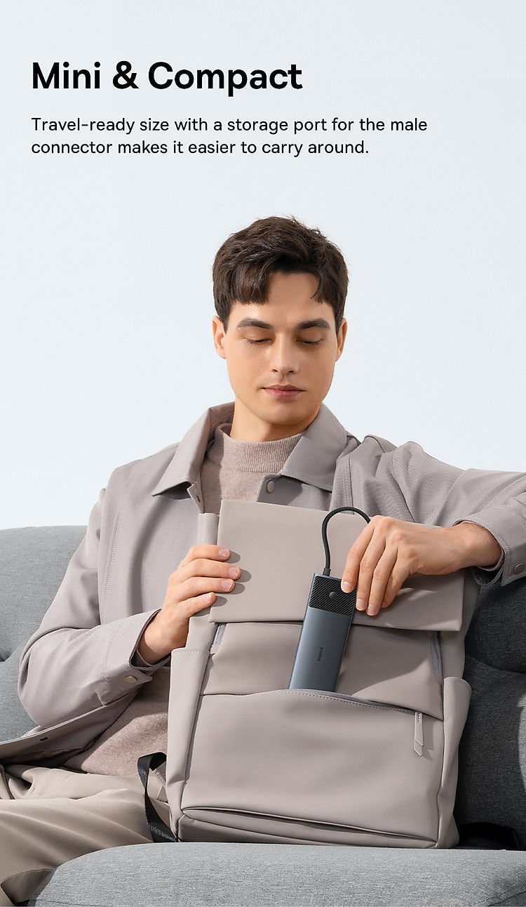 Thiết Kế Nhỏ Gọn: Với thiết kế nhỏ gọn và gọn nhẹ, bạn có thể dễ dàng mang theo OS-Baseus Metal Gleam Series II bất kỳ nơi nào. Điều này rất tiện lợi cho người làm việc từ xa hoặc khi bạn cần mở rộng kết nối của mình khi di chuyển.