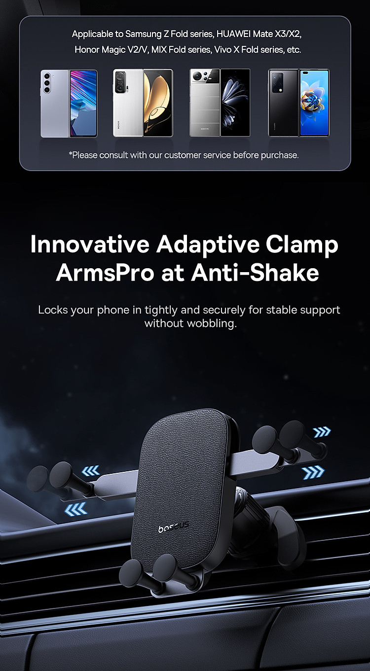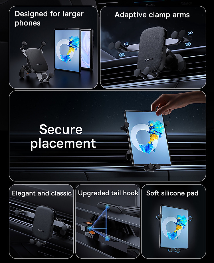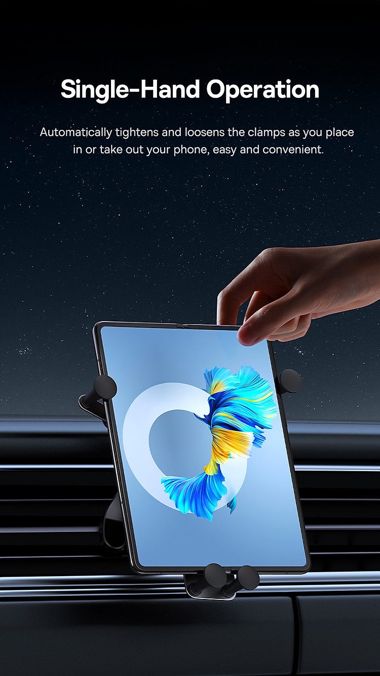 Sự gập màn hình độc đáo của Baseus UltraControl Mega Series giúp bạn dễ dàng thay đổi góc nhìn và điều chỉnh điện thoại theo ý muốn trong khi lái xe. Điều này không chỉ mang lại trải nghiệm lái xe thuận tiện mà còn đảm bảo an toàn tuyệt đối.