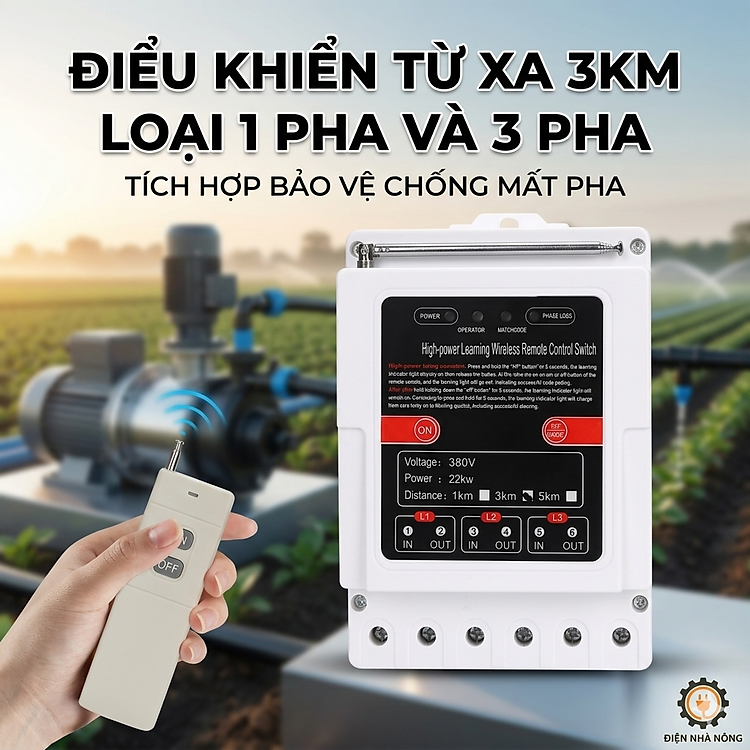 BỘ ĐIỀU KHIỂN TỪ XA 3KM (22kW/380V - 6kW/220V) – CÔNG SUẤT KHỦNG, SIÊU KHỎE, CHỐNG CHÁY MÁY TUYỆT ĐỐI