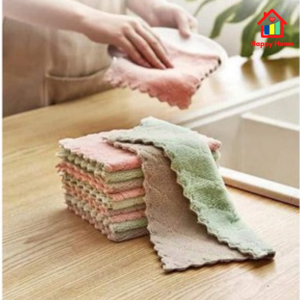 Khăn lau đa năng, lau bếp, bát đĩa, bàn ghế 2 mặt siêu mềm mịn, thấm hút tốt, kháng khuẩn Happy Home