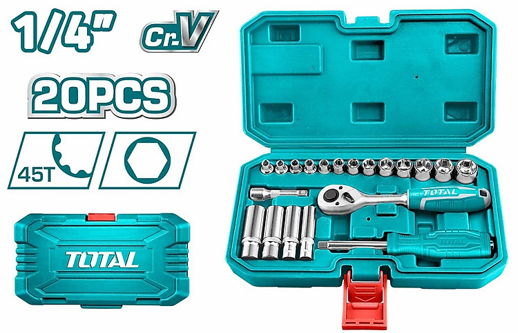 Bộ khẩu 20 chi tiết đầu tuýp 1/4'' làm từ thép CR-V đa năng, tiện lợi TOTAL THT141201 là sản phẩm đa năng có tính ứng dụng cao nên được người Việt sử dụng phổ biến hiện nay. Với các món đồ nghề, là sản phẩm hỗ trợ hiệu quả các hoạt động sửa chữa cần thiết trong cuộc sống hàng ngày của gia đình.