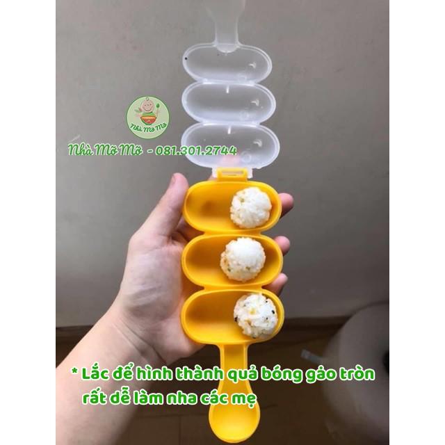 Khuôn lắc cơm bento tạo hình tròn 3 viên kèm thìa