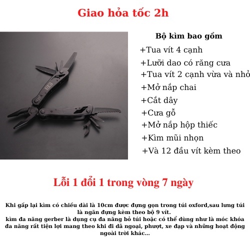💥KÌM GERBER là một dụng cụ đa năng được làm từ chất liệu thép không gỉ, độ cứng cao, gia công tỉ mỉ, thiết kế thông minh. Các dụng cụ hầu hết được giấu trong hai tay nắm của kìm, với trọng lượng 279g chiều dài 16cm, độ ma sát tay cầm lớn tạo cảm giác thoải mái, chắc chắn khi sử dụng.