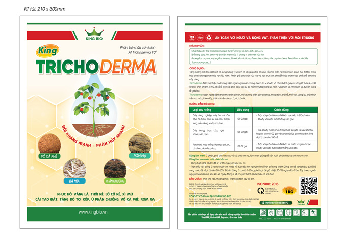 King Trichoderma Phân bón hữu cơ vi sinh - Phục hồi vàng lá, thối rễ, lỡ cổ rễ, xì mũ, cải tạo đất, tăng độ tơi xối, ủ phân chuồng, vỏ cà phê, rơm rạ.