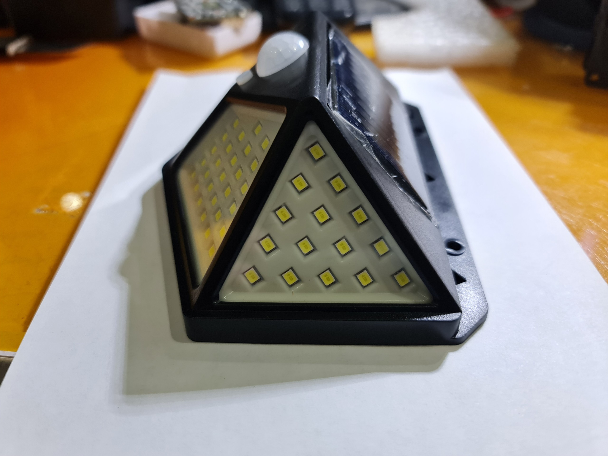 Công nghệ mới nhất: cảm biến năng lượng mặt trời này sử dụng các tấm pin mặt trời hàng đầu thế giới (Silicon đơn tinh thể) để chuyển đổi tới 19% ánh sáng mặt trời thành điện năng, sạc nhanh hơn ít nhất 5% so với các loại đèn tường năng lượng mặt trời Khác (polysilicon). Đặc biệt là vào mùa đông hoặc những ngày mưa, tiết kiệm thời gian sạc của bạn khi không có đủ ánh sáng!