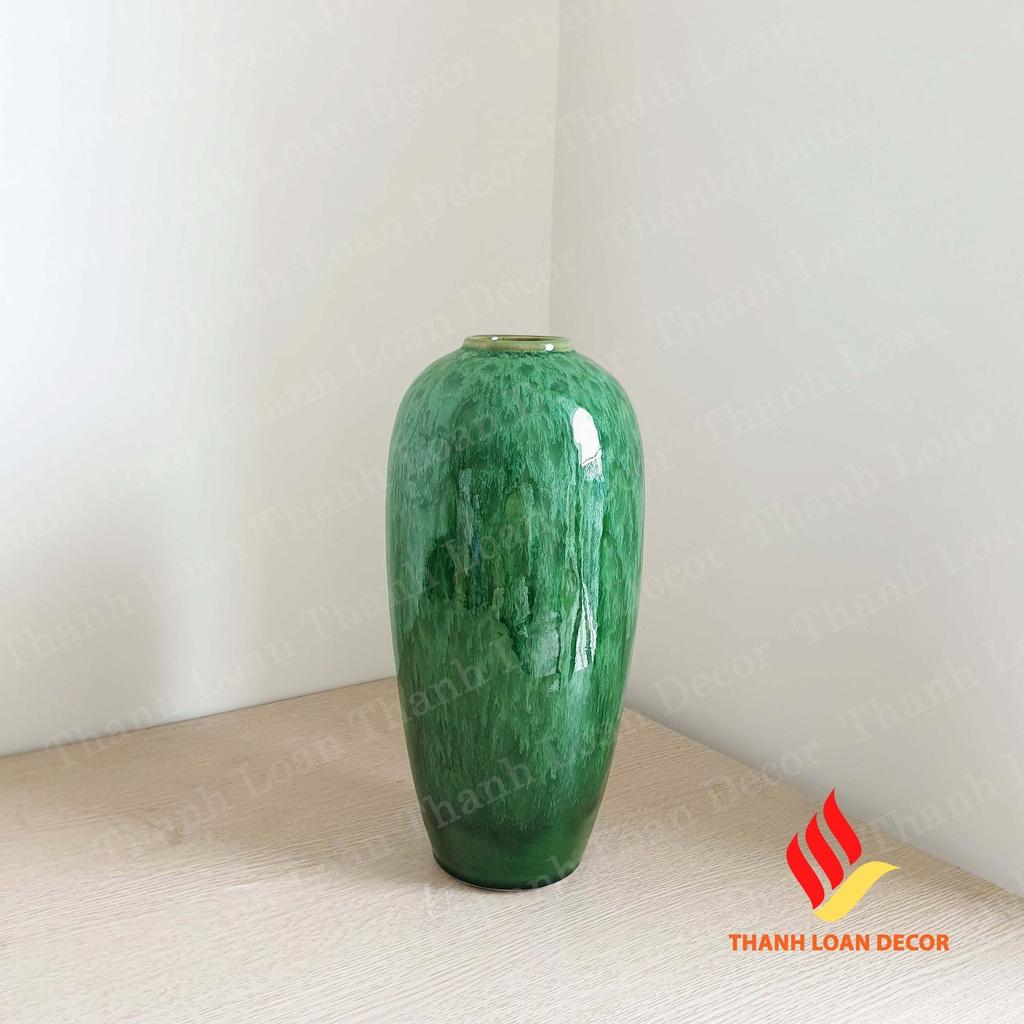 Lọ hoa gốm Bát Tràng cỡ to - Bình hoa trang trí đẹp - Men xanh ngọc lục bảo cao cấp