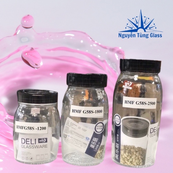 Lọ thuỷ tinh nắp xoáy đen HMFG58S size 1200-1800-2500ML