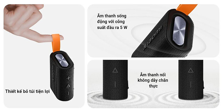 Thiết kế cực kỳ đơn giản, loa đặt được cả chiều ngang và chiều dọc, giúp thiết bị thích nghi với bất kỳ hoàn cảnh nào. Tông màu đen tinh tế điểm xuyết chút sắc cam rực rỡ để tạo ra một sự kết hợp màu sắc ấn tượng và độc đáo, thể hiện cá tính.