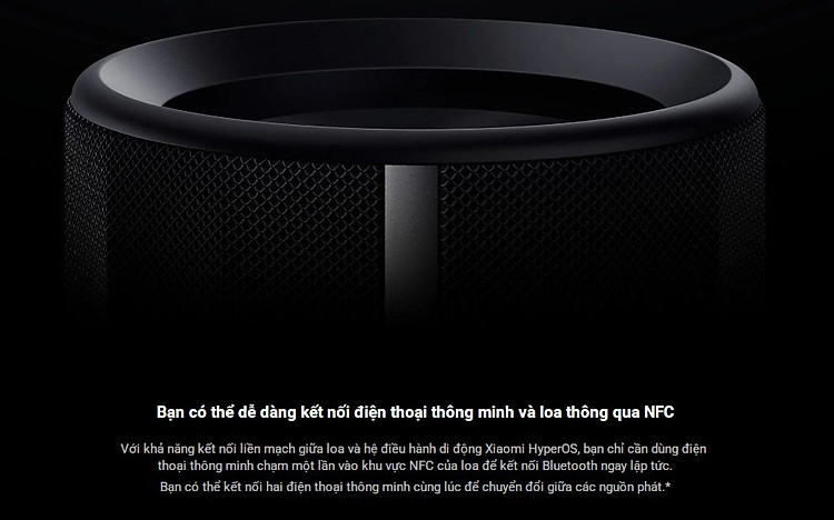 Với khả năng kết nối liền mạch giữa loa và hệ điều hành di động Xiaomi HyperOS, bạn chỉ cần dùng điện thoại thông minh chạm một lần vào khu vực NFC của loa để kết nối Bluetooth ngay lập tức.