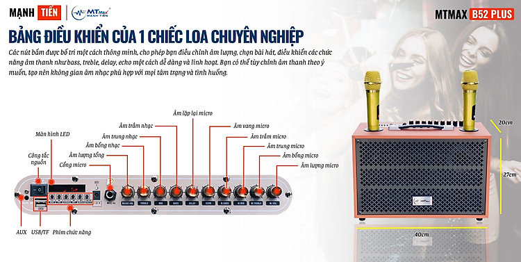 Loa Di Động Karaoke 10 Nút MTMAX B52 Plus - Bass 20 Âm Thanh Trung Thực Đa Dạng Kết Nối BT, AUX, USB, TF Hàng chính hãng