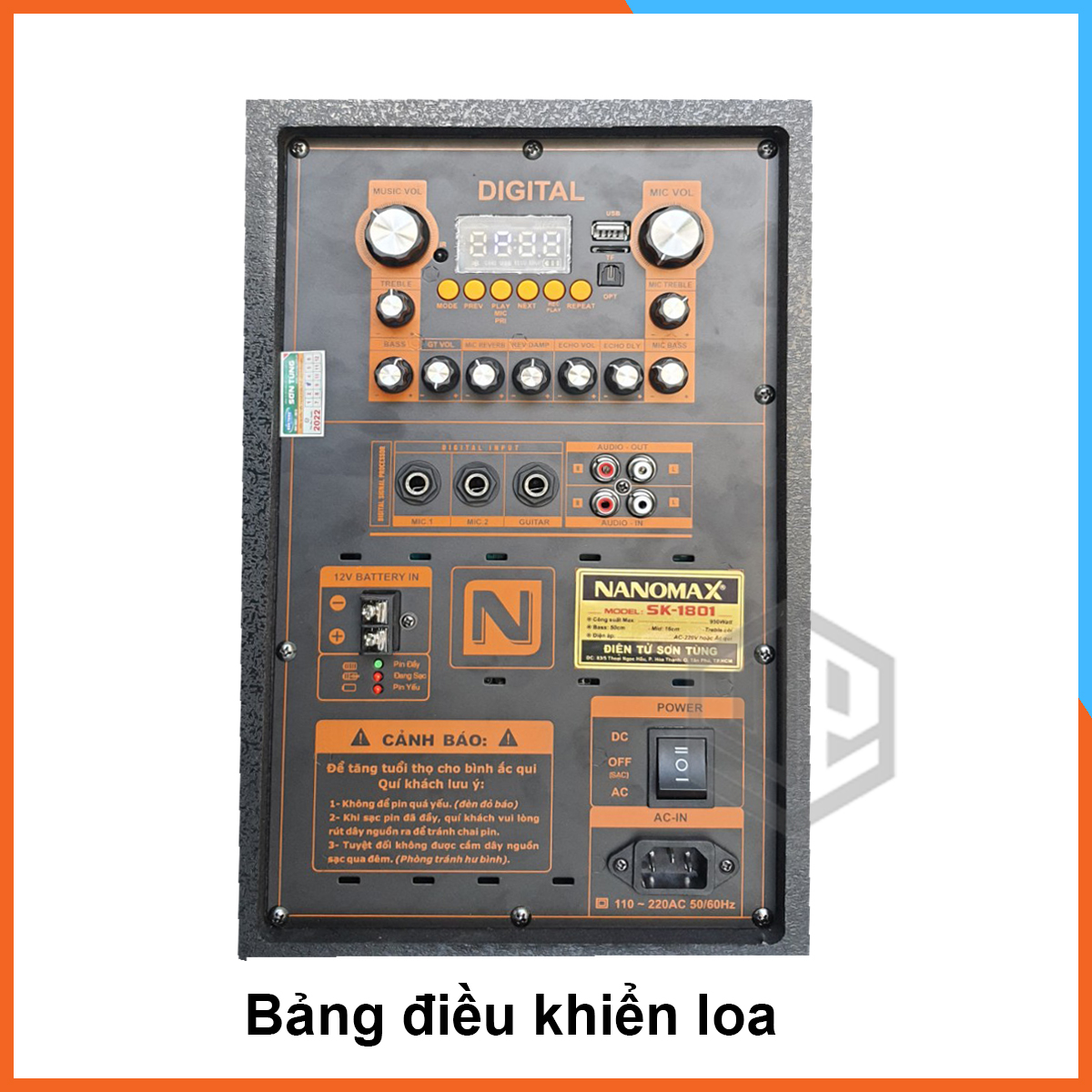 Loa kéo di động NANOMAX SK-1801 mẫu loa di động được thiết kế theo dạng xe đẩy, rất dễ dàng khi muốn di chuyển, thùng đóng bằng ván/ gỗ công nghiệp nhìn đơn giản mà sang trọng, chất âm trầm ấm, công suất cực lớn. Loa kéo di động NANOMAX SK-1801 là mẫu loa karaoke 3 đường tiếng, bass 50cm + 1 loa trung 16cm + 1 treble còi, board công suất đời mới có đầy đủ chức năng cho các nhu cầu: hát nhạc, karaoke, nghe đài FM, chơi nhạc cụ