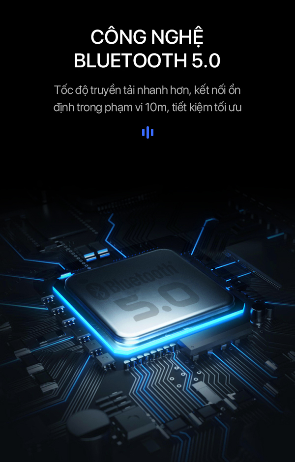 - Công nghệ bluetooth 5.0 cho tốc độ truyền tải nhanh hơn, kết nối ổn định trong phạm vi 10m.