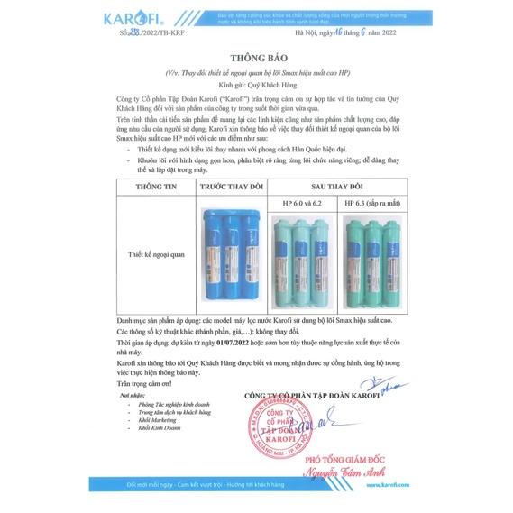 ![Bộ lõi lọc Karofi SMAX hiệu suất cao [HP 6.2] dùng cho các máy KAQ-U05, KAQ-U95, KAQ-P95, KAQ-O07.... - Hàng Chính Hãng](https://salt.tikicdn.com/ts/product/cc/e8/9a/aaa0eac8186b4a39f90b6d78e83bd605.jpg)