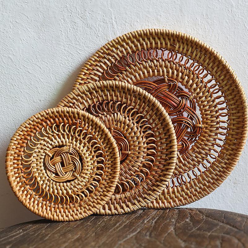 Giới thiệu Lót ly, lót cốc bằng mây guộc hình hoa nhiều kích thước, đế lót ly mây làm phụ kiện chụp ảnh decor -LEODEN DECOR