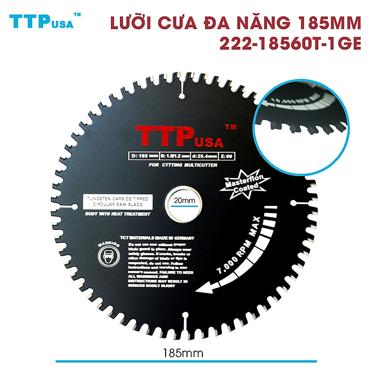 - Lưỡi cưa tròn đa năng 185mm TTPusa 222-18560T-1GE