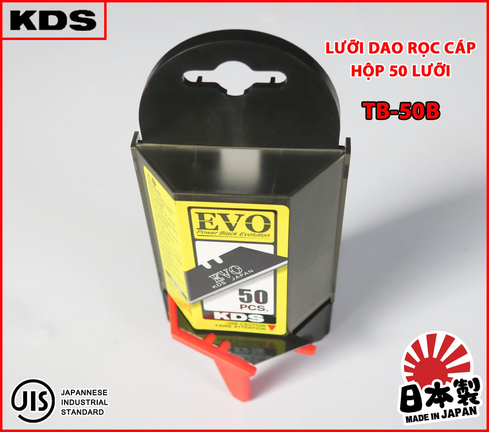 - Lưỡi dao rọc cáp KDS TB-50B đạt tiêu chuẩn chất lượng công nghiệp Nhật Bản (JIS). Lưỡi dao hình thang chuyên dụng với 2 đầu nhọn, có thể đảo đầu khi sử dụng giúp bạn tiết kiệm chi phí.