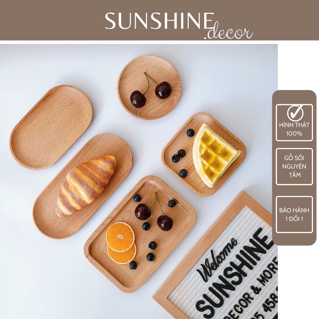 Giới thiệu Đĩa gỗ khay gỗ sồi đựng đồ ăn chụp ảnh decor trang trí bàn ăn
