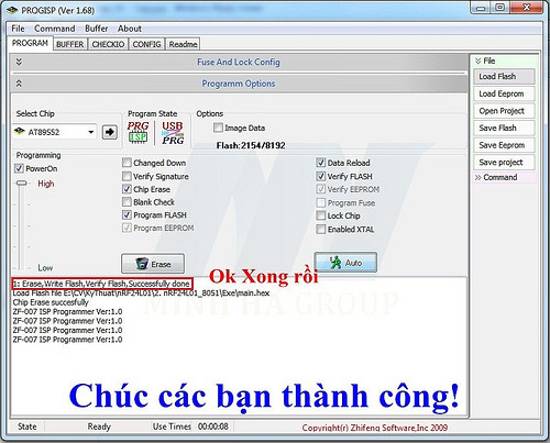 Khi có dòng chữ : Erase,Write Flash,Verify Flash,Successfully done tức là bạn đã nạp xong chương trình.
