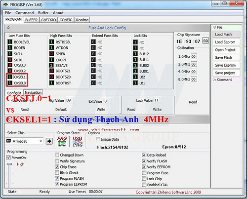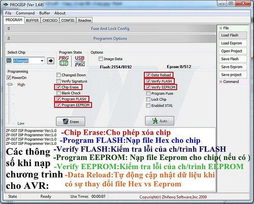 Các thông số quan trọng khi nạp chương trình cho ATmega8 (Thông số quan trọng chương trình sẽ tự động Tích (V) khi bạn chọn chip tương ứng , bạn không cần thay đổi gì cả (Bên dưới là giải thích) )