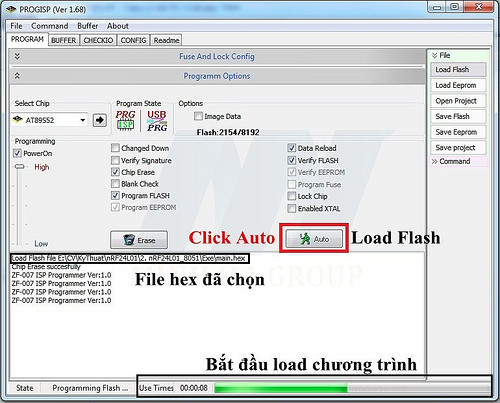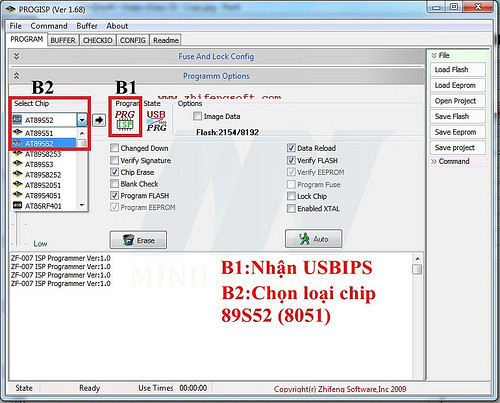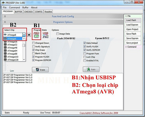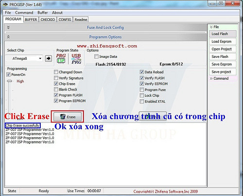Bước 4: Xóa chip ( Xóa chương trình cũ có trong chip ).