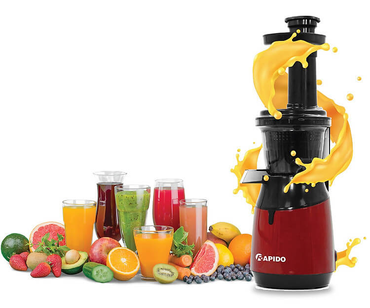 Không hề kén nguyên liệu như các loại máy thông thường. Máy ép chậm Rapido RSJ150 sử dụng động cơ 150W có thể ép được tất cả các loại rau củ quả từ cứng như ổi, cóc, đến nhiều xơ như cần tây, rau má,…