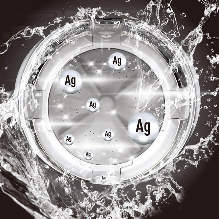 Các ion bạc mang lại hiệu quả kháng khuẩn và chống nấm mốc cho mâm giặt và hệ thống lọc xơ vải với khả năng loại bỏ cặn bột giặt.