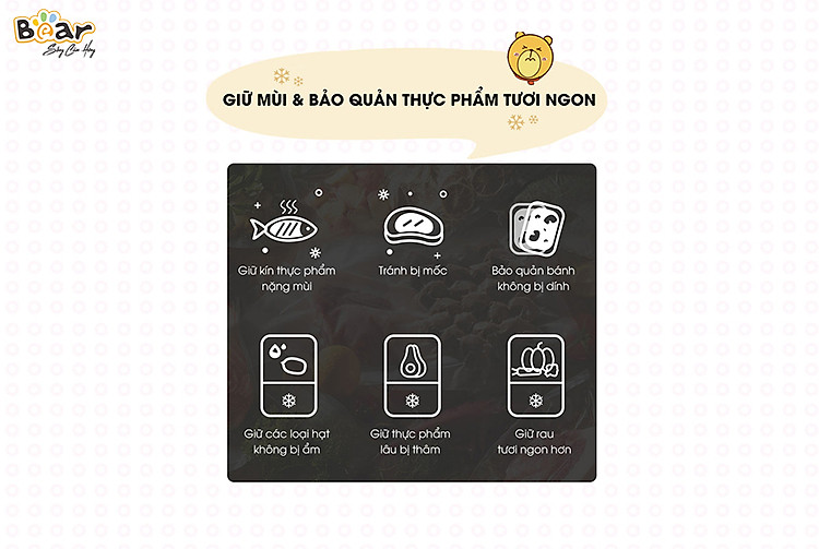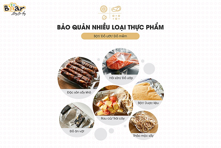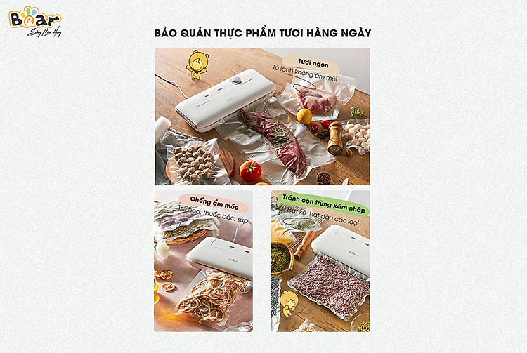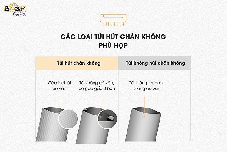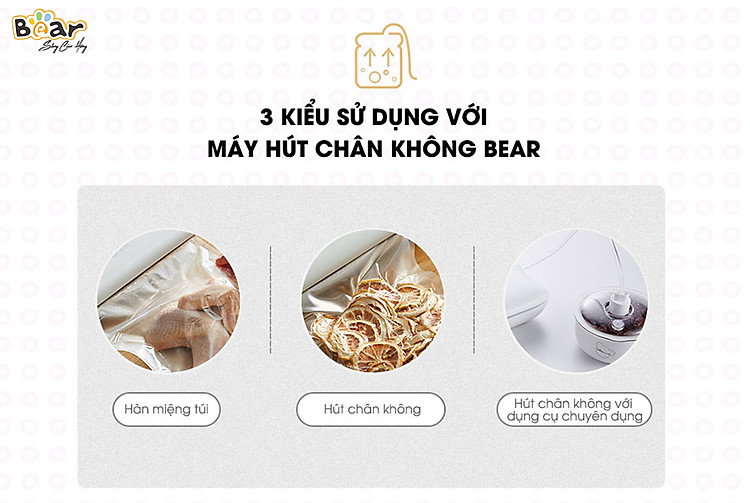 Máy hút chân không Bear có thể sử dụng được với hầu hết các loại kích thước túi khác nhau (lưu ý chiều dài <30cm).