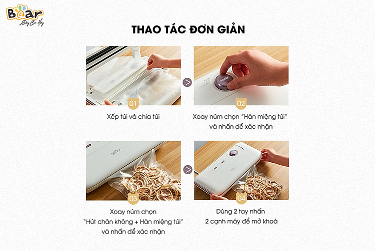 Các bước hút chân không thực phẩm với máy hút chân không Bear VS-B01V1 (FKJ-A01F1)