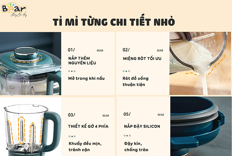 - Máy xay nấu đa năng Bear PBJ-B06S2 có thể làm được đa dạng các loại sữa hạt, sữa gạo; xay sinh tố và nấu các món cháo, món soup thơm ngon, nóng hổi