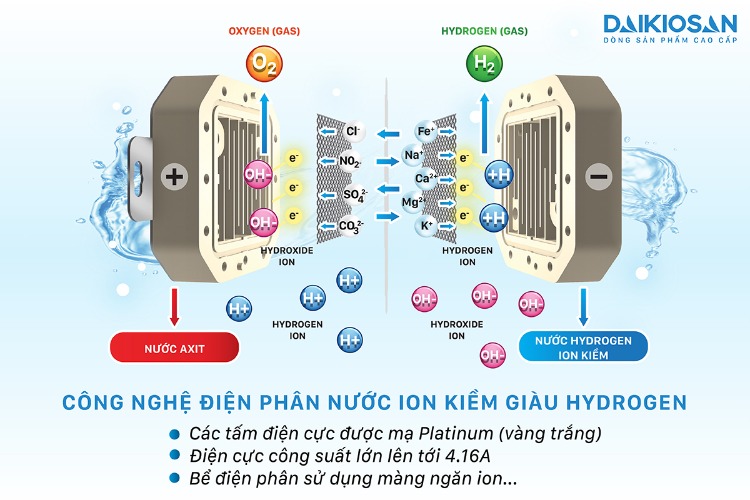 Chính vì vậy, Máy lọc nước ion kiềm 3D Daikiosan DSW-43608I ứng dụng công nghệ điện phân nước RO. Đây được xem là công nghệ tiên tiến, rất phù hợp để lọc sạch đa dạng nguồn nước ô nhiễm tại Việt Nam đưa nguồn nước trở về trạng thái tinh khiết, đạt chuẩn nước uống trực tiếp trước khi đưa vào bể điện phân để tạo nước ion kiềm giàu Hydrogen.