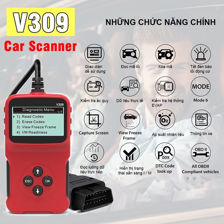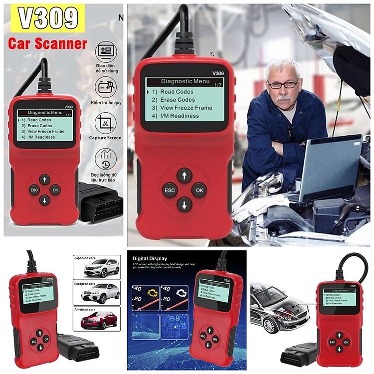 Dụng cụ OBD2 cầm tay --- V309 giúp bạn dễ dàng tiết kiệm thời gian và tiền bạc khi sửa chữa - tìm ra lỗi trước khi sửa chữa
