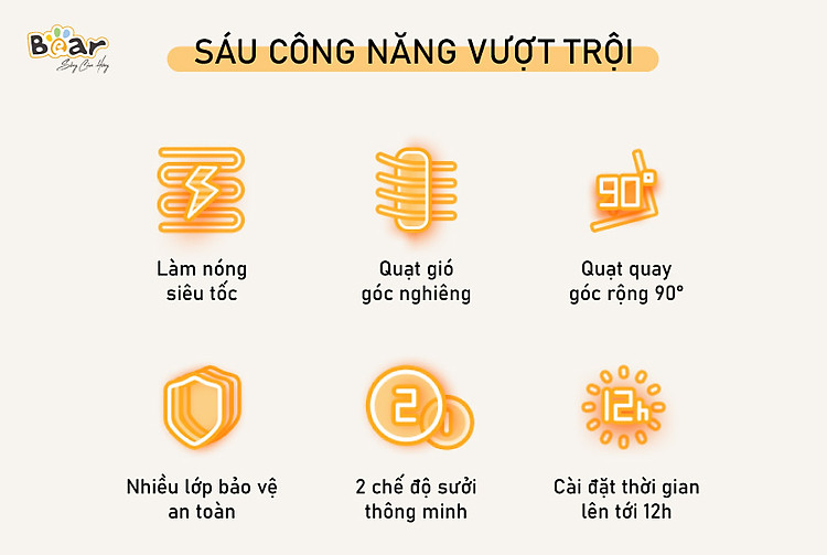 Việc sử dụng máy sưởi sử dụng đèn halogen gây ra tình trạng khô da, đốt cháy oxy làm người sử dụng khó thở, đây là nỗi ám ảnh của nhiều gia đình. Công nghệ sưởi gốm có trong quạt sưởi gốm Bear DNQ-C20H5 chính là nâng cấp đáng giá bậc nhất. Bên cạnh đó, quạt gió được thiết kế góc nghiêng độc đáo, tỏa nhiệt rộng hơn và ấm hơn mà không đốt oxy, không gây khô da.