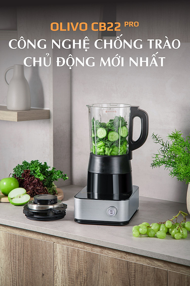 - Olivo CB22 PRO được trang bị cho hệ thống xay mạnh mẽ, công suất cao giúp xay nhuyễn thực phẩm trong nháy mắt mà vẫn đảm bảo được hương vị thơm ngon, dinh dưỡng và ít tiếng ồn.