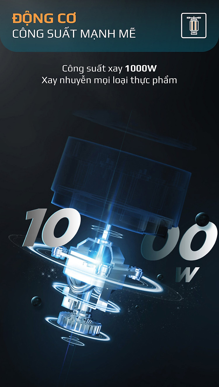 - Công suất xay 1000W, xay vụn ngay cả đá lạnh chỉ trong nháy mắt.