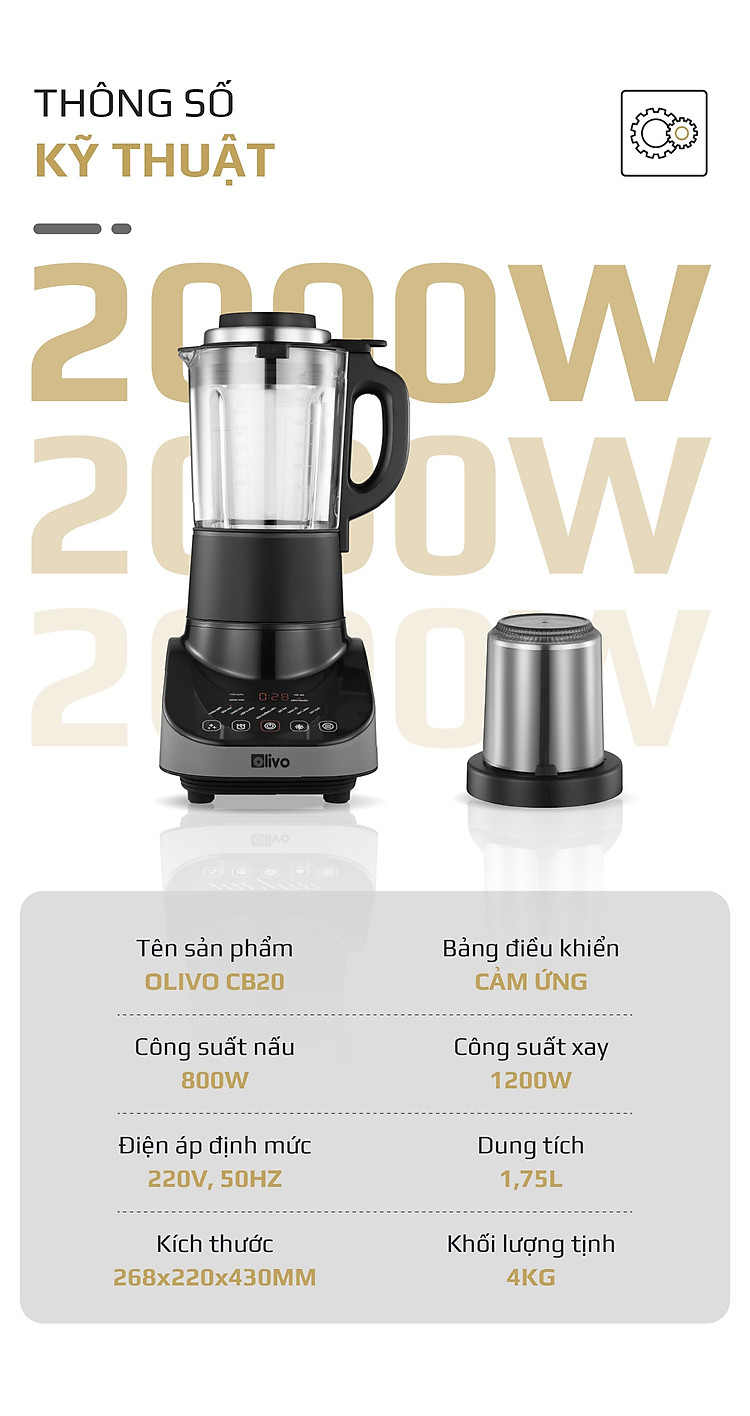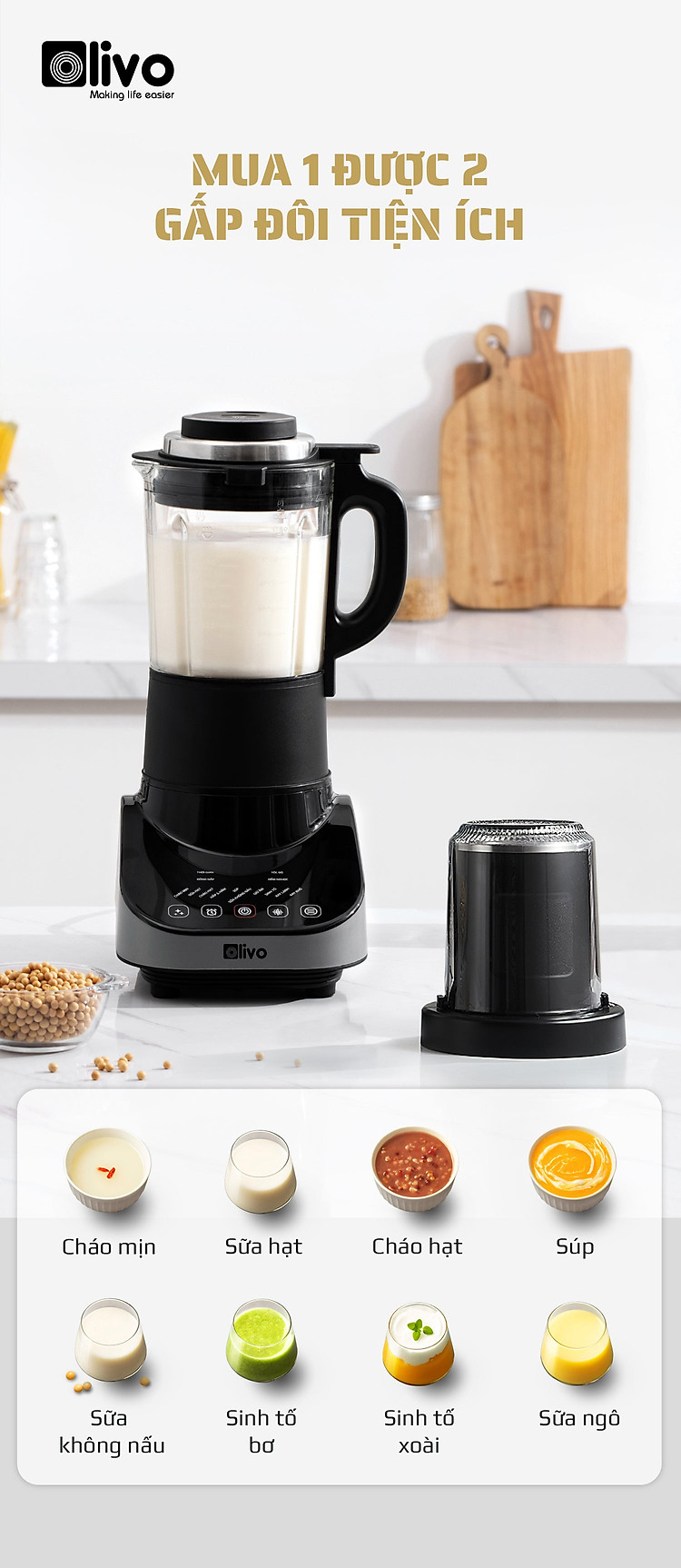 Máy Xay Nấu Đa Năng OLIVO CB20 - Hai Cối Xay Linh Hoạt - Độ Ồn Thấp Nhất Thị Trường - Đa Năng Nấu Sữa, Làm Sinh Tố, Xay Khô