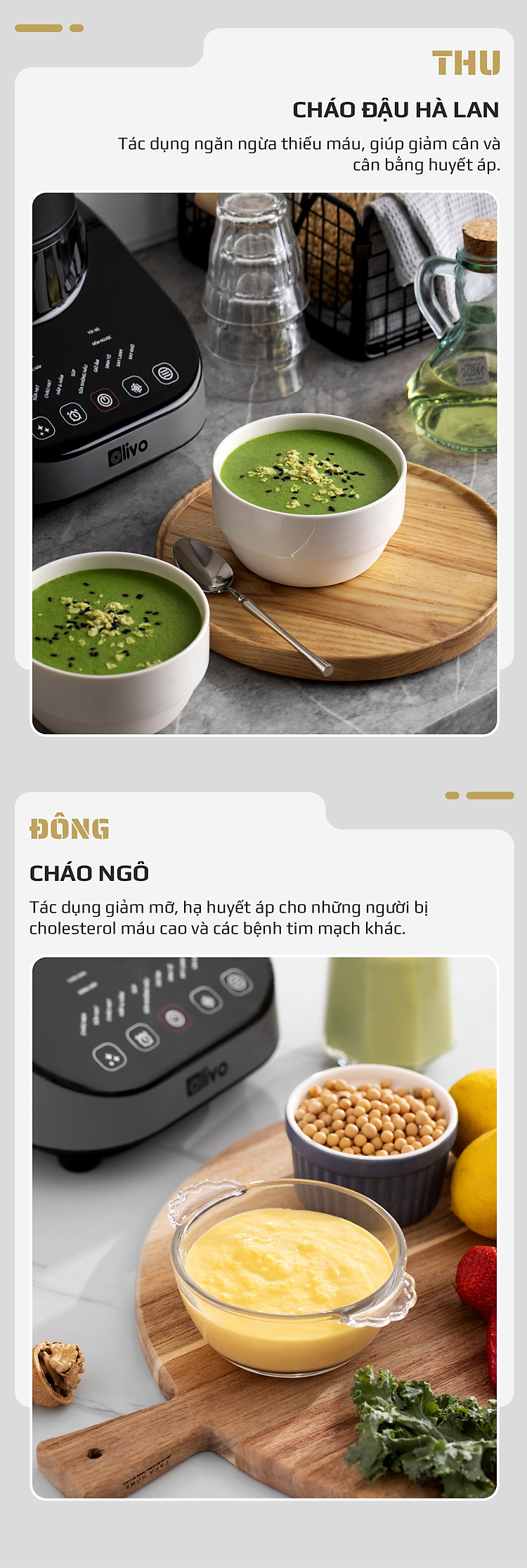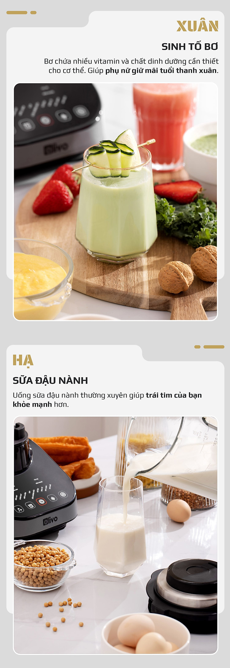 - Máy có các chức năng như: sữa hạt, sữa không nấu, cháo, súp, hấp, hầm, sinh tố, xay lạnh, xay khô… và có thể tùy chỉnh thời gian và nhiệt độ theo ý. Rất tiện lợi để nấu bữa sáng và sử dụng quanh năm với vô vàn món ngon bốn mùa.