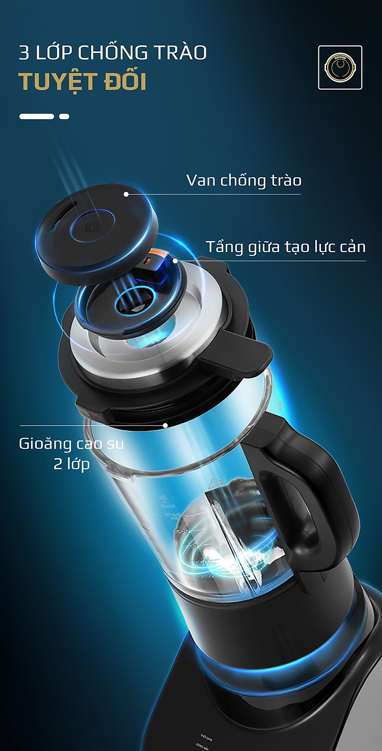 - Nguyên lý chống trào sản phẩm mới lần này là 3 lớp bảo vệ kép: